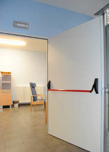Beda edil dispone in pronta consegna PORTE ANTINCENDIO REI 120 reversibili con maniglione antipanico.