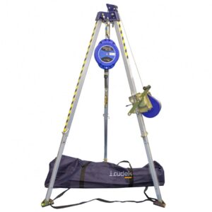 Leggi tuttoKit per spazi confinati composto da : treppiede in alluminio Sekuralt con carrucola,Verricello di Salvataggio Sekuralt da 20M , 1 Anticaduta Sekurblok