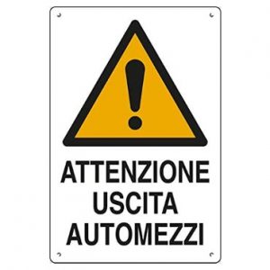 CARTELLO ” ATTENZIONE USCITA AUTOMEZZI”
