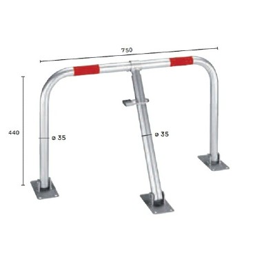 Realizzato in acciaio zincato a caldo con 2 fasce di pellicola rifrangente rossa.
