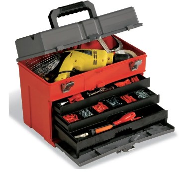 La cassetta porta attrezzi PLANO 855 realizzata in polipropilene è dotata di ampio scomparto superiore per riporre gli utensili più grandi e 3 cassetti sottostanti divisibili da 16 a 32 scompartimenti.