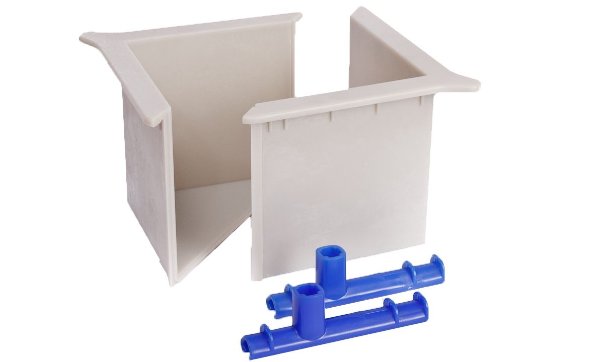 La cubettiera Eurocubo è una cassaforma realizzata in materiale plastico rigido per il confezionamento di provini cubici di conglomerato cementizio.