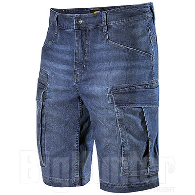 Bermuda denim leggero cargo stone washed, elasticizzato.