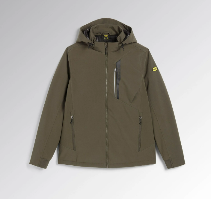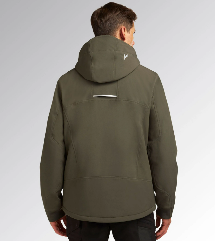 Giacca in softshell con imbottitura leggera, antivento e trattamento idrorepellente.