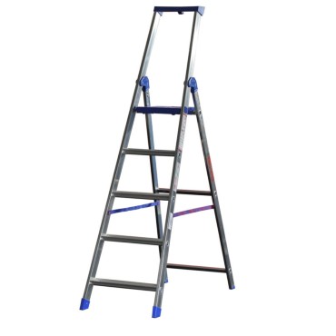 CLIMB EVO ha il gradino espanso e ribordato che permette un utilizzo intensivo per il professionista ma anche per tutti coloro che vogliono lavorare con una scala sicura. Leggera, maneggevole e comoda grazie al gradino larghezza 80 mm e il passo di mm 280, parapetto mm 600, ampia piattaforma mm 270×290. Cinghie antiapertura.