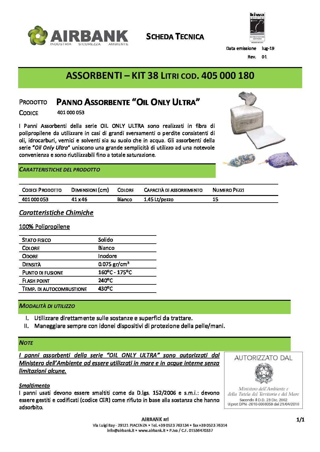 - I PANNI E I CUSCINI sono invece indicati per sversamenti più piccoli e per pulire i macchinari o le zone non raggiungibili con le polveri.