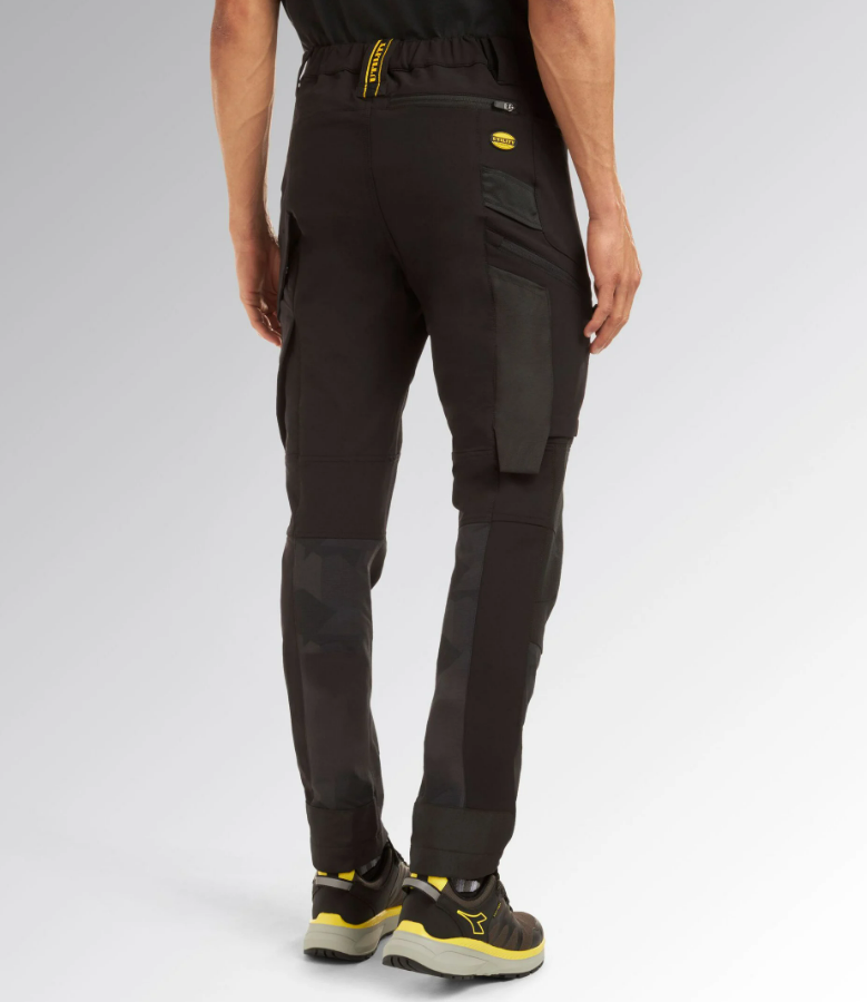 Elastico in vita per un maggiore comfort, passante centrale con personalizzazione Utility.