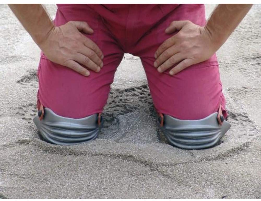 Particolarmente utili in fase di stesura dell’impasto per sottofondi, infatti la parte esterna con soffietto si mantiene aderente al ginocchio evitando che la sabbia entri tra ginocchio e ginocchiera.