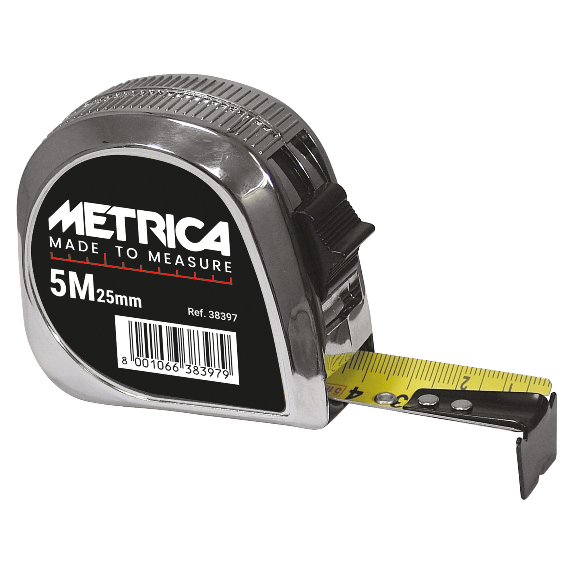 Metrica flessometro metro fettuccia cromato tascabile 25mm professionale.