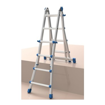 Equipe è la scala telescopica in alluminio, utilizzabile a cavalletto, zoppa, doppia e allungata.