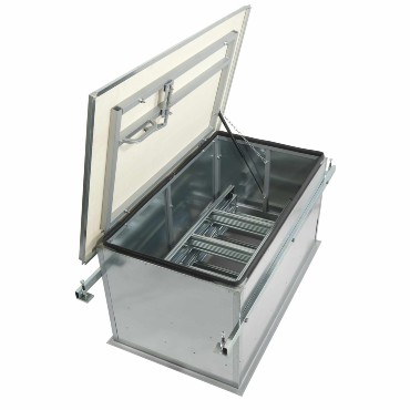 • lamiera zincata a caldo (spessore 0,6 mm) con pellicola termoisolante intorno al cassonetto; guarnizione tra coperchio superiore e cassonetto