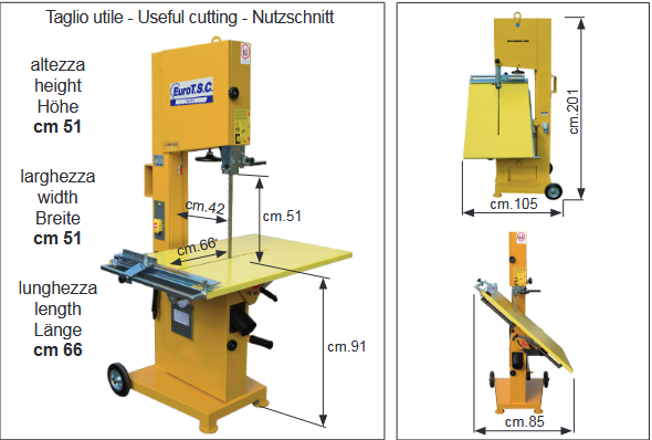 Avanzamento a spinta manuale del banco. Spegnimento automatico della sega.