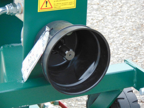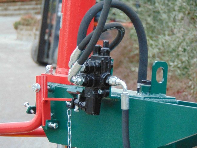 Lo spaccalegna è fornito di una doppia velocità, la velocità di avvicinamento che permette di raggiungere allo spaccalegna la velocità massima garantita dalle norme, e la velocità di spacco, più lenta ma che permette alla macchina di raggiungere le 10 ton. effettive di potenza.