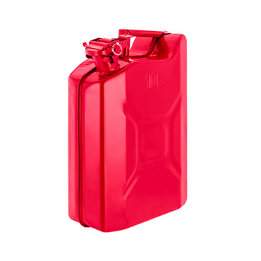 Fusto in metallo per lo stoccaggio e il trasporto di combustibili (benzina e gasolio), con capacità di 10 litri.