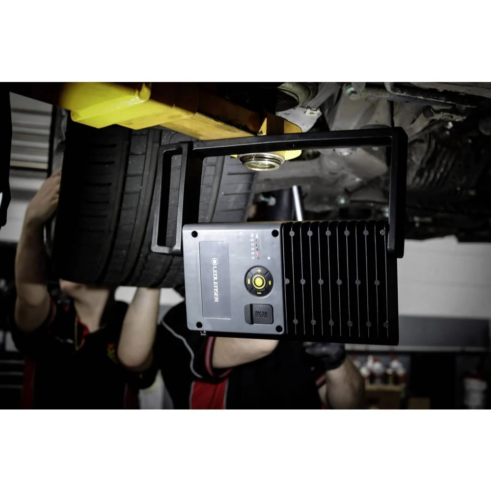 Ledlenser iF8R LED Faretto da cantiere, ricaricabile, batteria al litio, senza cavi, IP54, 4500 lumen, comando Bluetooth, base di sostegno flessibile conmagnete, supporto per cavalletto, powerbank USB