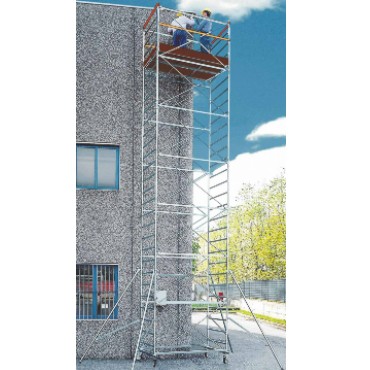 Un trabattello capace di raggiungere le massime altezze d’uso, in grado di rispondere a tutte le necessità, garantendo sempre un’ottima stabilità. Dispone di una grande base rettangolare rigida che consente l’applicazione di stabilizzatori a vite 2 (optional) ed una superficie di calpestio di 2,40 m per ogni piano lavoro, garantendo comodità nei movimenti in quota. Con la sola aggiunta di piani di lavoro e parapetti intermedi si conforma alla norma Europea UNI EN 1004 per un uso non ancorato.