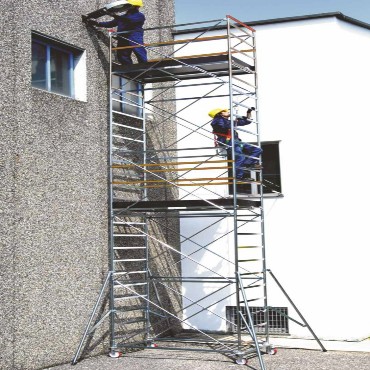 Configurazione accessoriata del ORIO del quale conserva tutte le caratteristiche qualitative e funzionali, ORIO HD aggiunge i piani di lavoro con parapetti intermedi, staffe stabilizzatrici e ruote anti-schiacciamento, così si conforma alle normative europee UNI EN 1004 per un uso non ancorato fino ad un’altezza di lavoro di mt. 9,95.